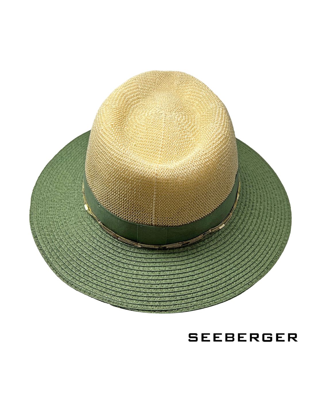 Ornée d'un ruban noir et d'une lanière nouée surmonté du Logo Seeberger gravé sur une plaque métallique.