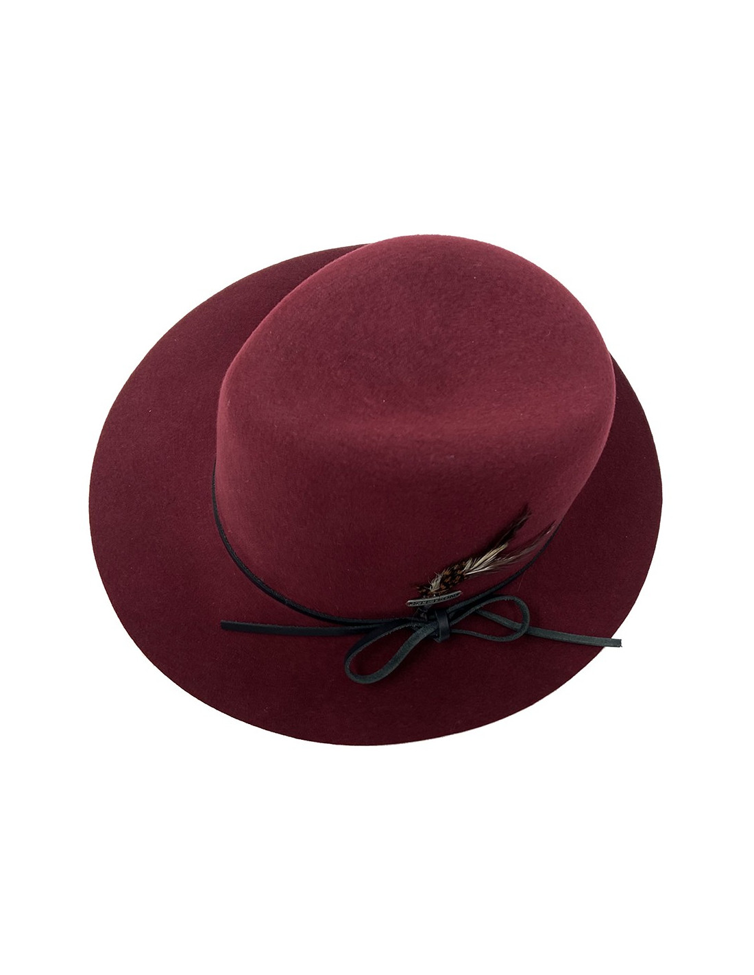 Orné d'une discrète lanière en cuir nouée, surmonté du logo Stetson gravé sur une plaque en métal et ses plumes amovibles.