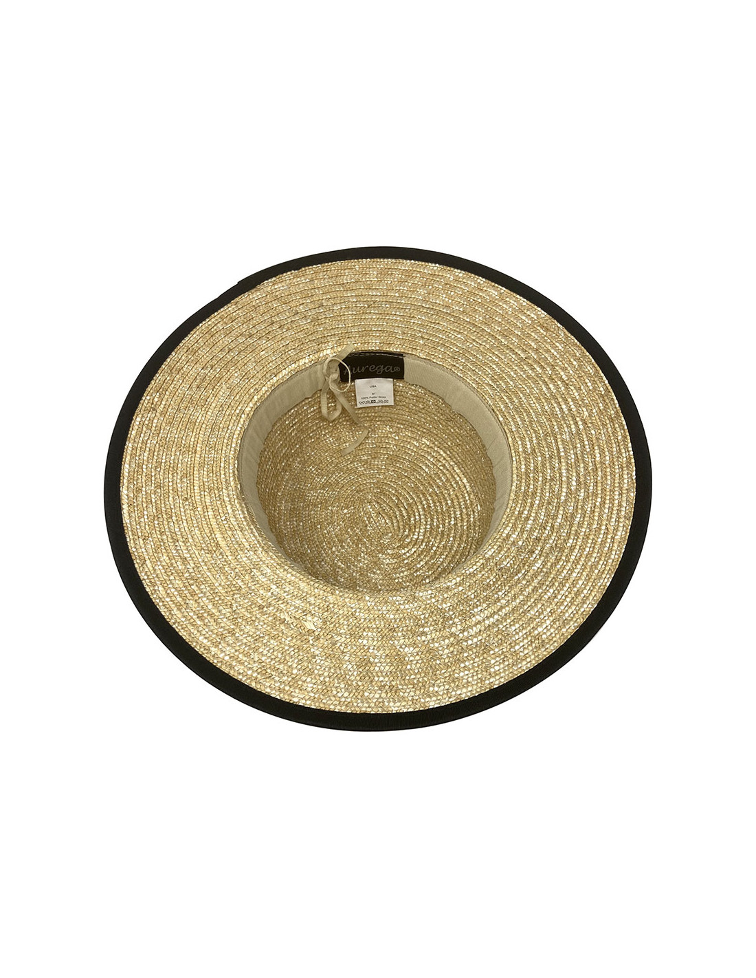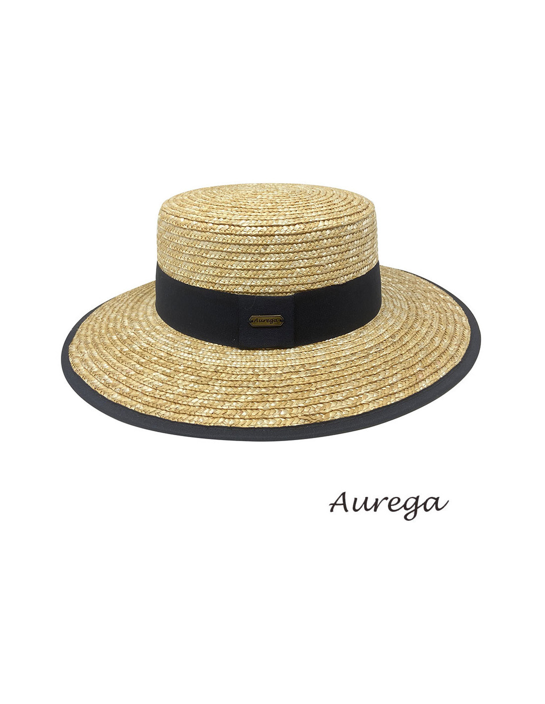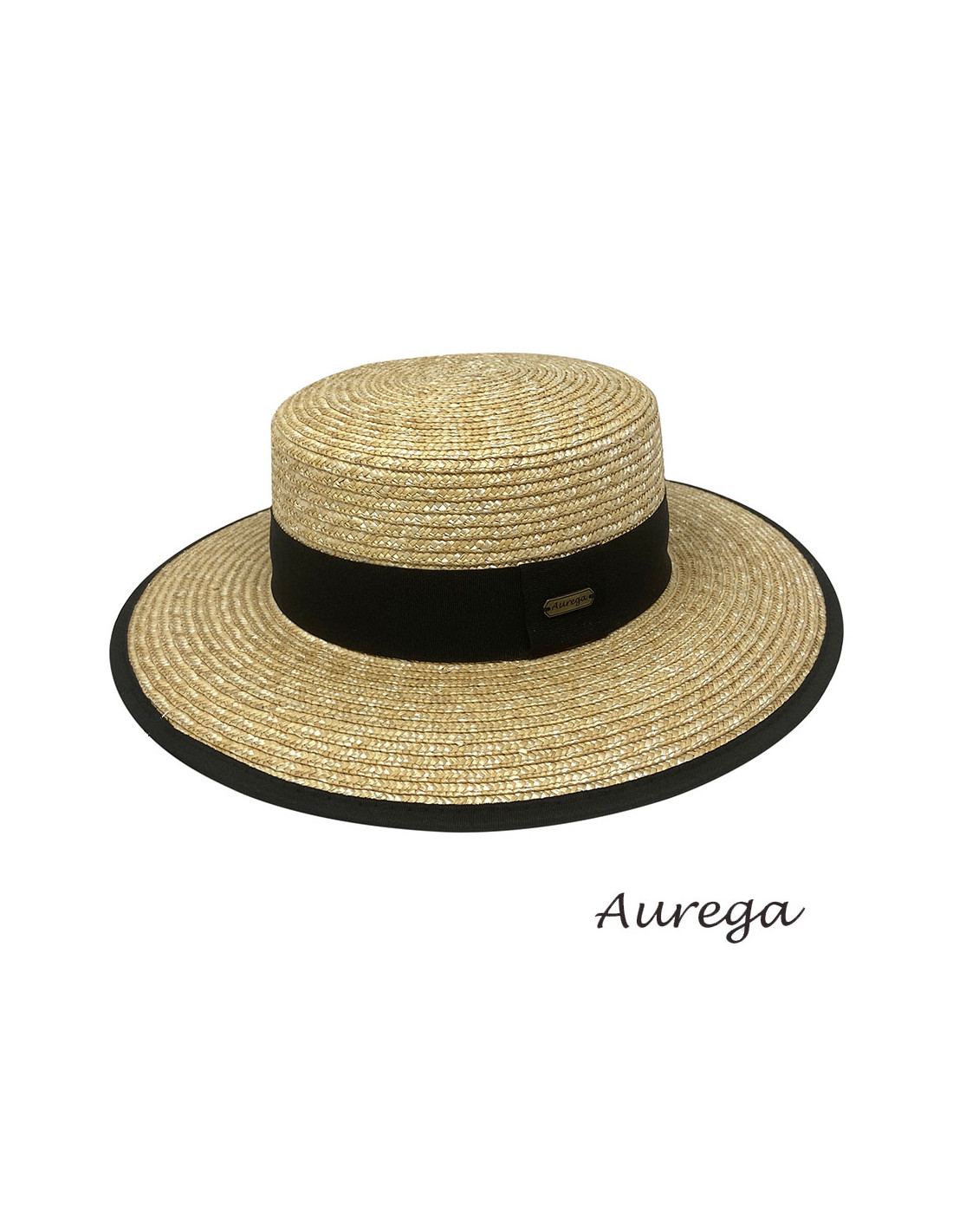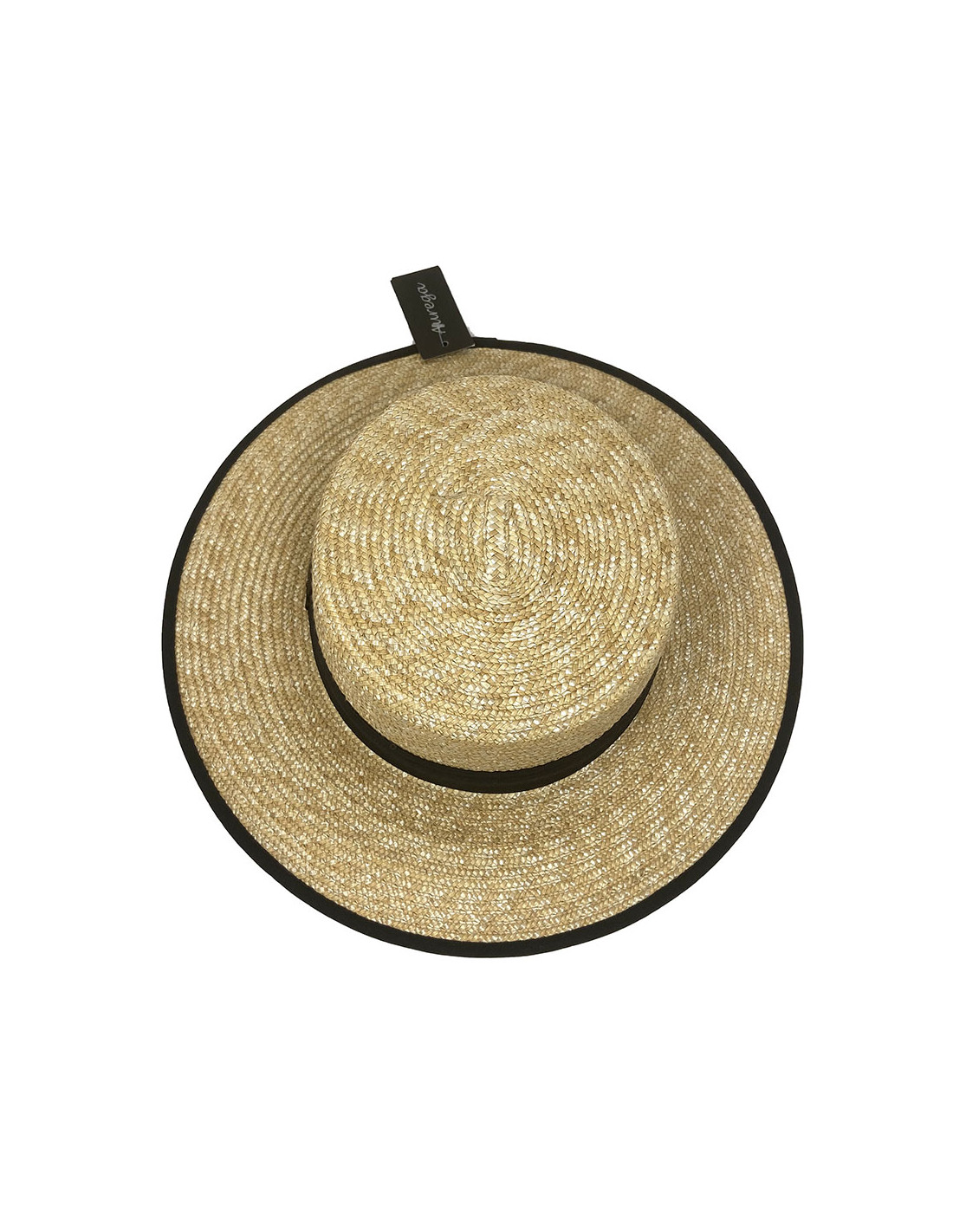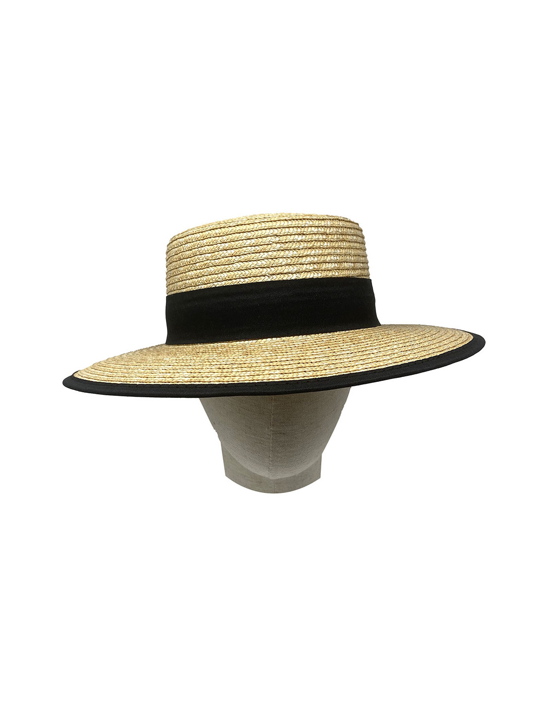 Chapeau en tresse de paille cousue de forme Canotier légèrement plus long que le canotier traditionnel.
